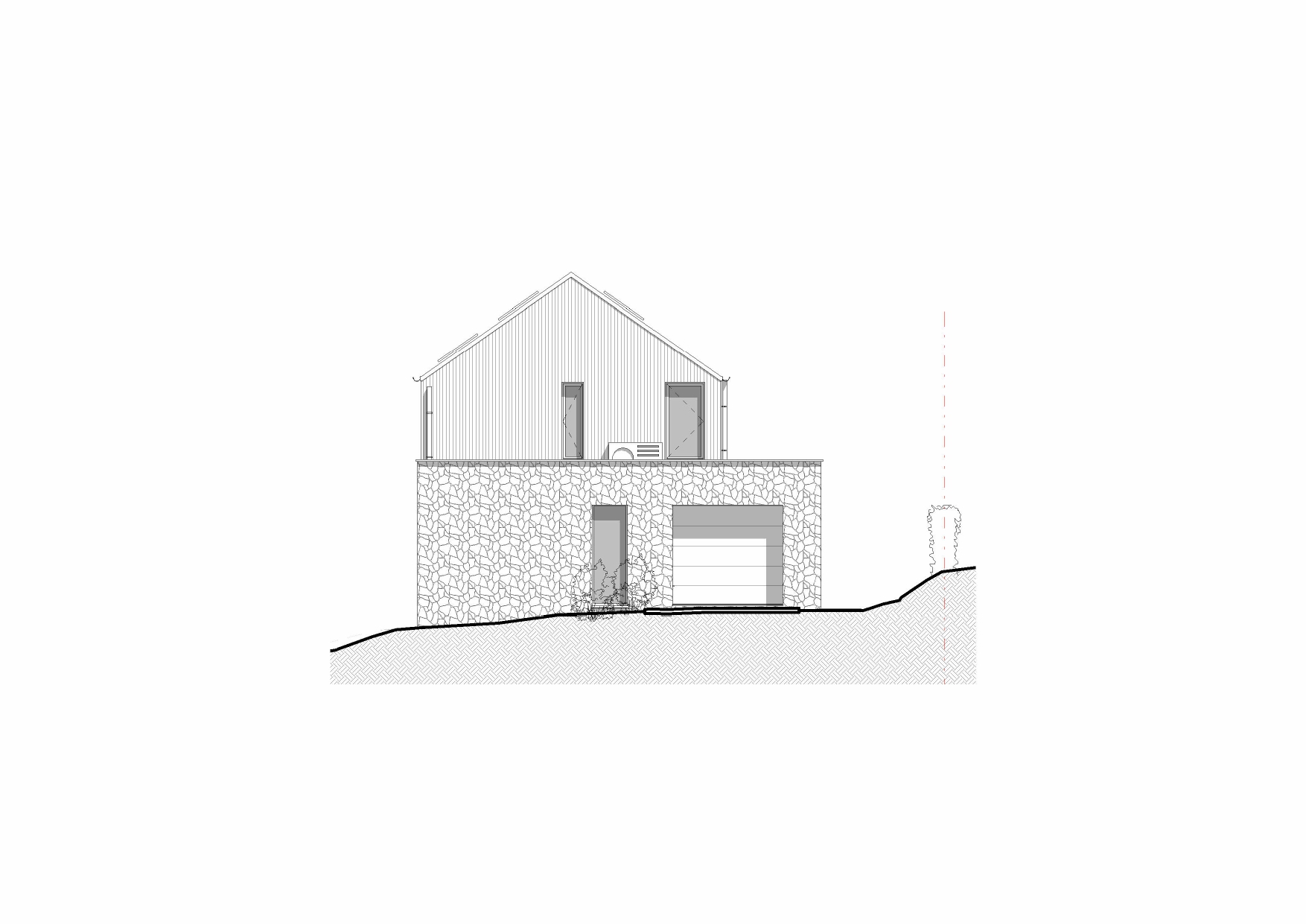 Le projet est conçu comme une longère traditionnelle posée sur un socle en pierre du pays. Ce socle abrite les espaces de vie et met en valeur la vue vers la vallée, avec la possibilité d’une ouverture sur une terrasse couverte également orientée vers le paysage.